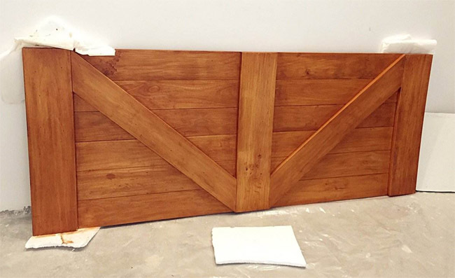 (2)使用厚毛的棕毛刷蘸取少量色浆,沿木纹方向,均匀的涂刷至木作表面;
